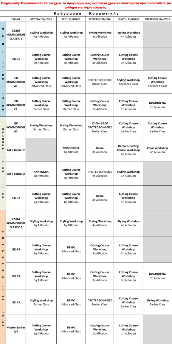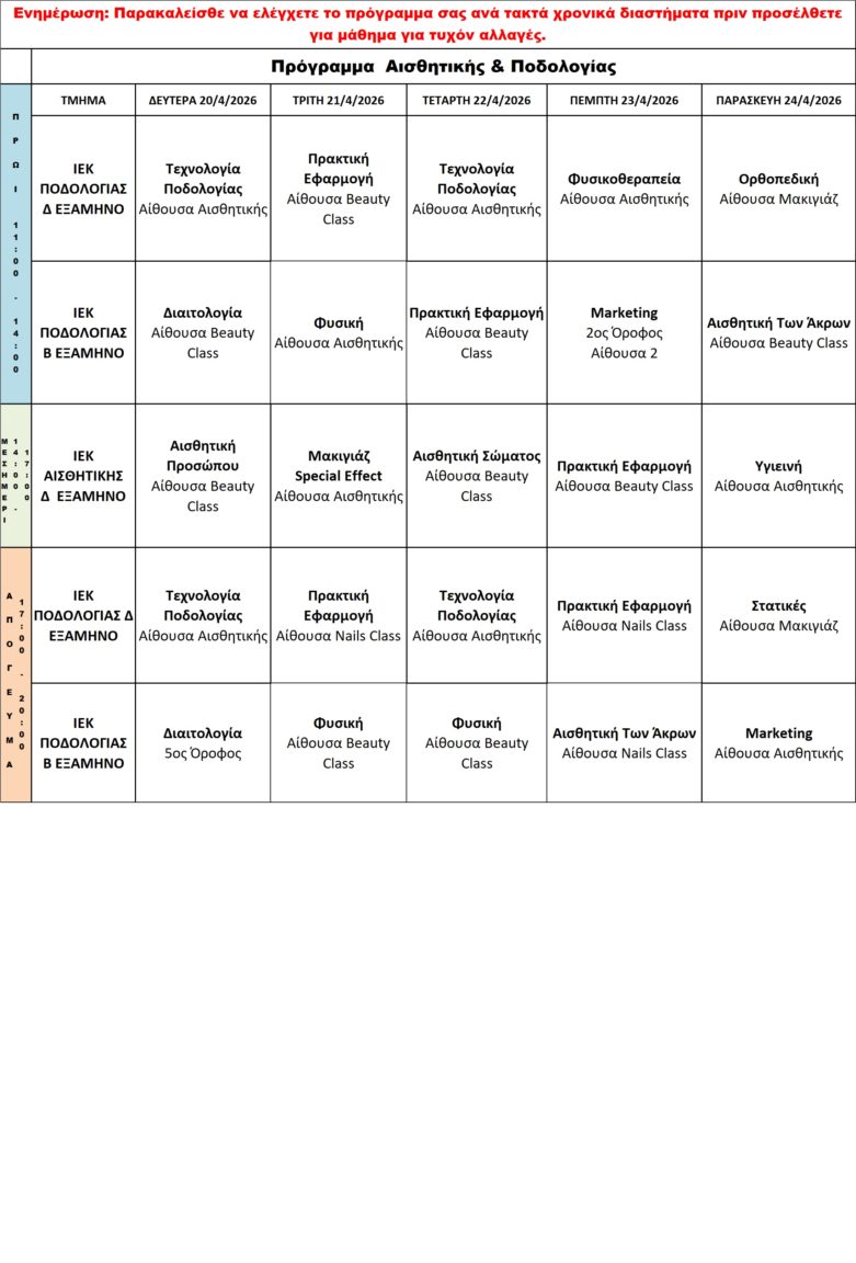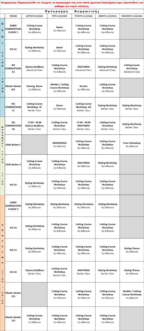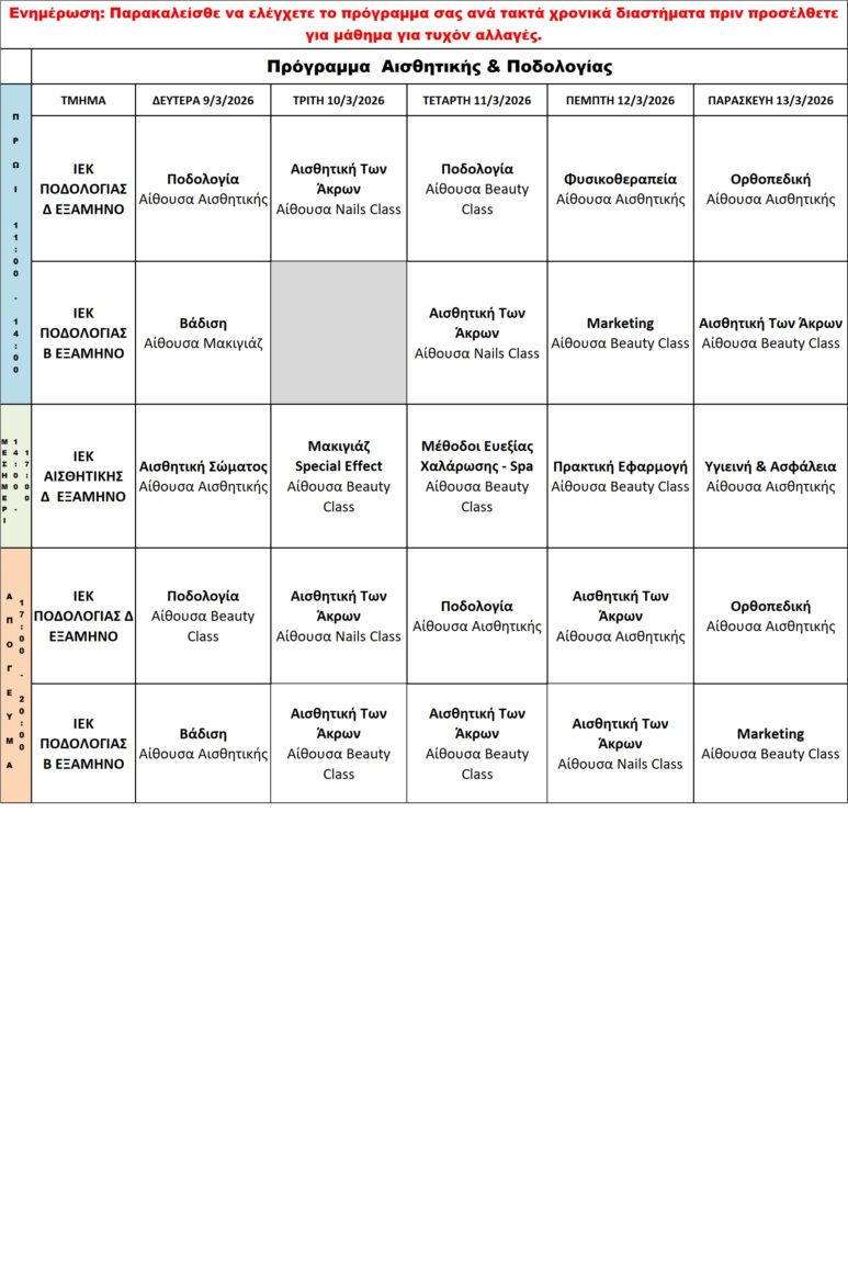 Εβδομαδιαίο Πρόγραμμα Μαθητών